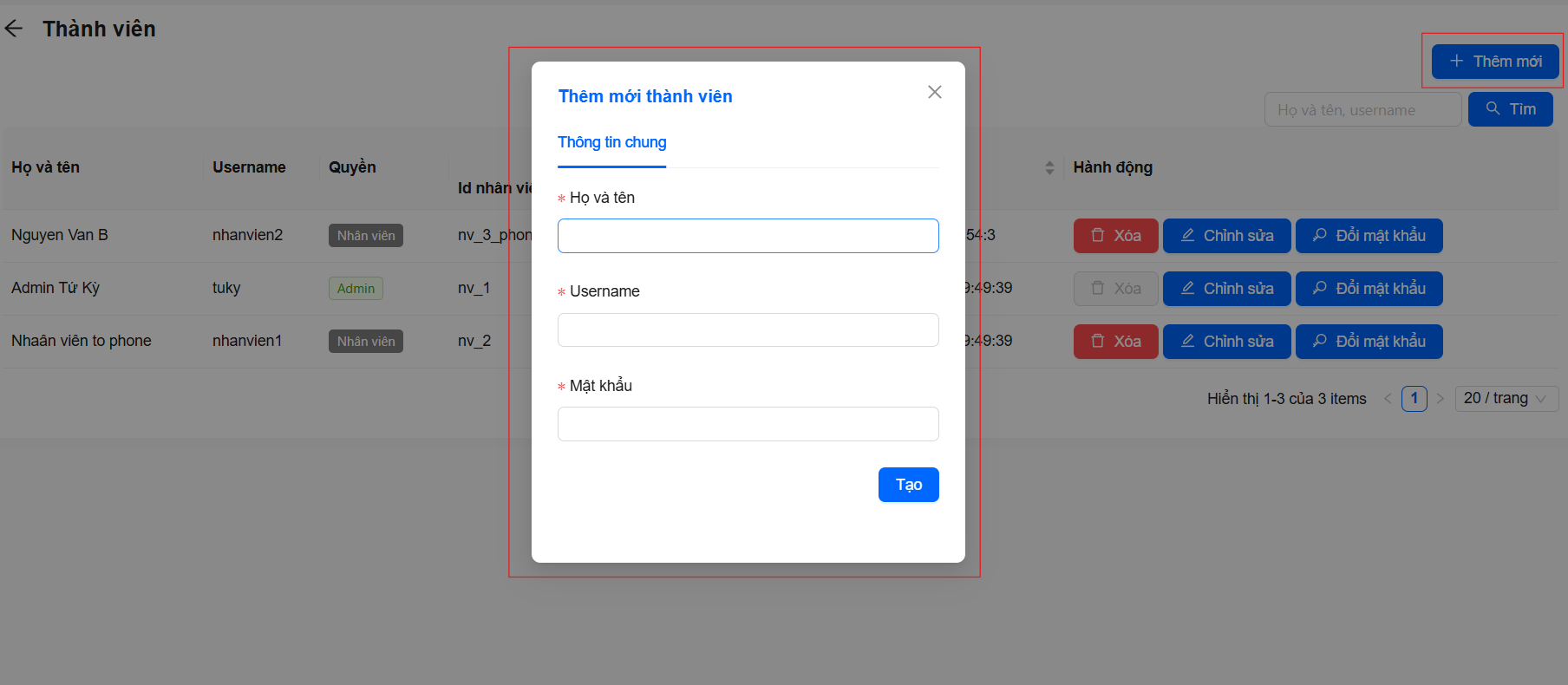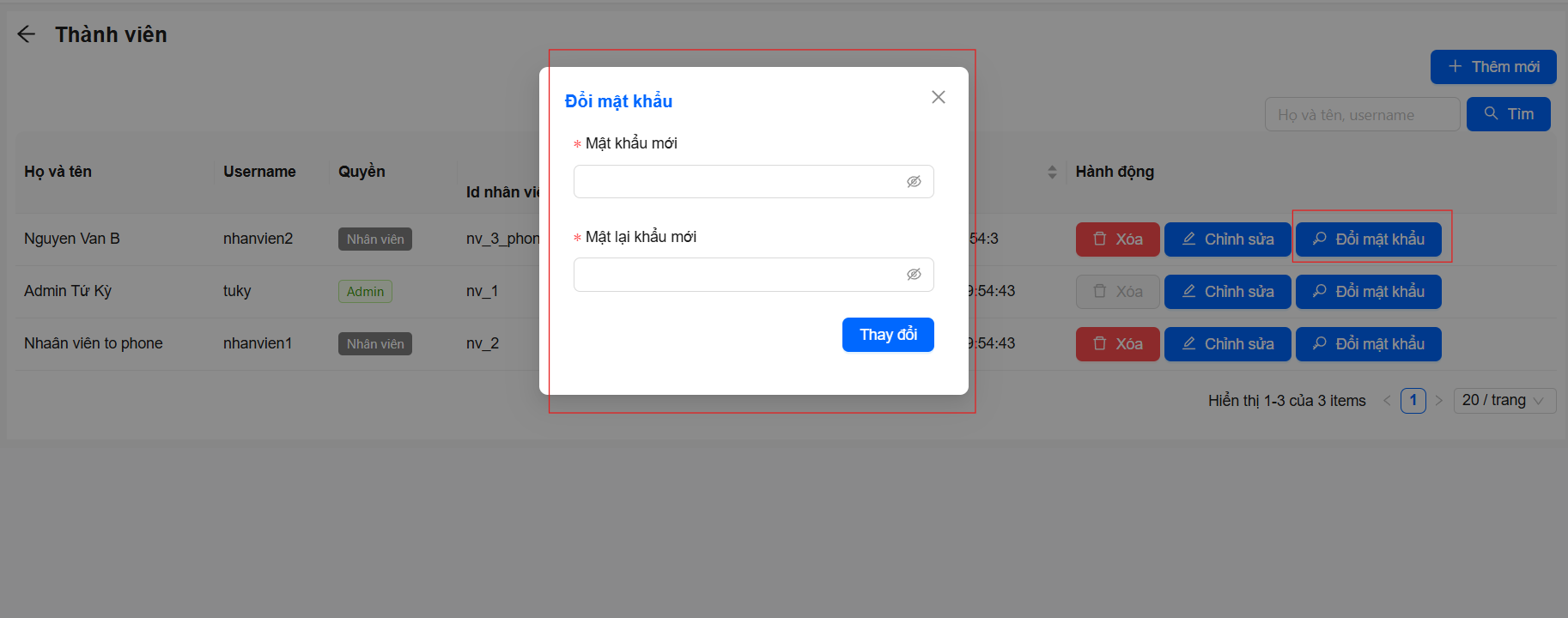 - Chọn bất kỳ vào thành viên nào để đổi mật khẩu