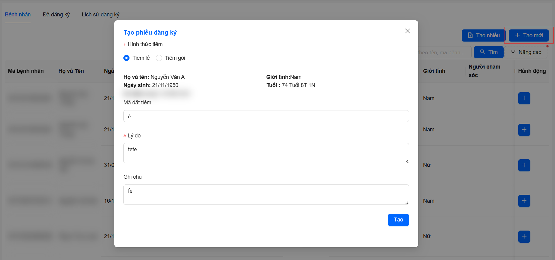 2. Tạo mới bệnh nhân (nếu chưa có)